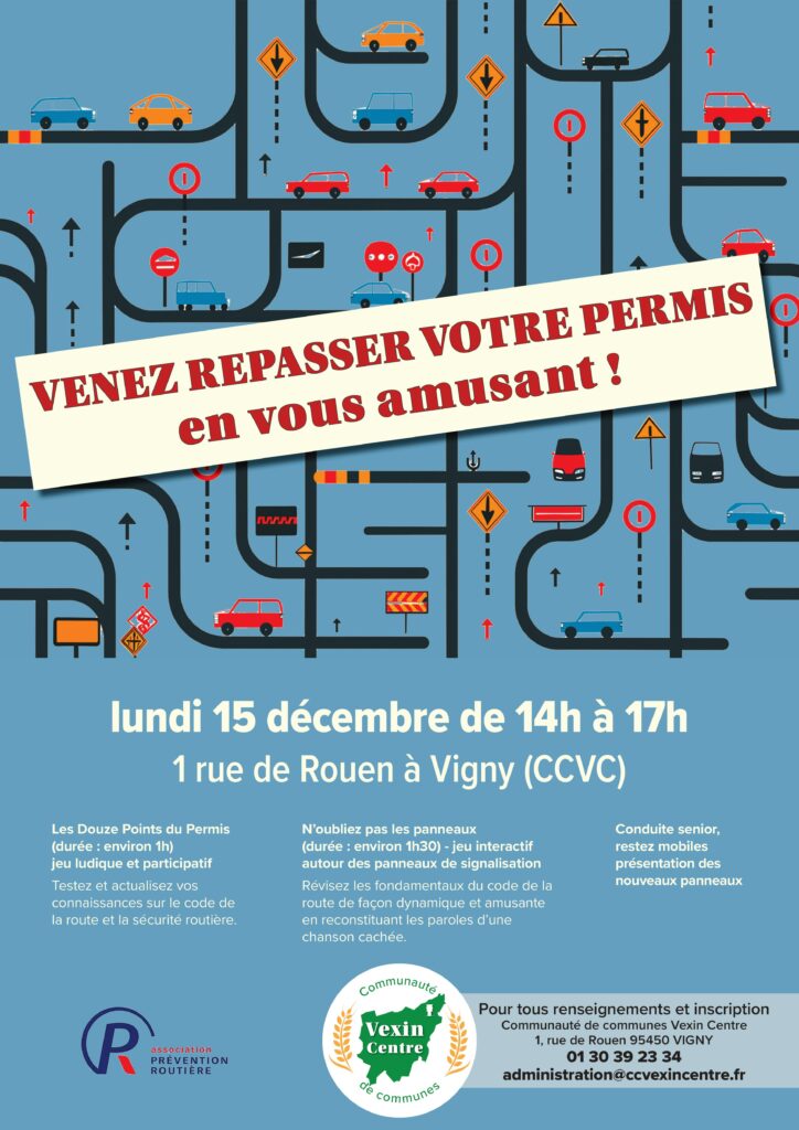 đ Devant le succĂšs rencontrĂ© pour la premiĂšre session de cet atelier dĂ©diĂ© aux sĂ©niors du territoire, pour venir tester ou rĂ©viser leurs connaissances de maniĂšre ludique grĂące Ă un atelier en partenariat avec la PrĂ©vention RoutiĂšre, la communautĂ© de communes Vexin Centre propose une deuxiĂšme date :