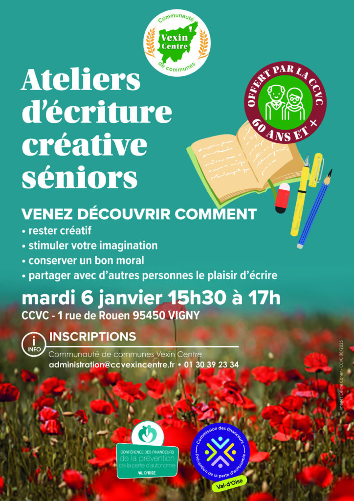 La communauté de communes Vexin Centre organise des sessions d’écriture créative pour les seniors jusqu’au mois d’avril, à raison d’une séance par mois, les mardis à la CCVC – 1 rue de Rouen à Vigny.