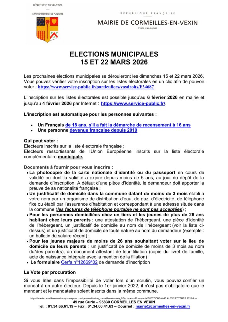 Les prochaines élections municipales auront lieu les 15 et 22 Mars 2026