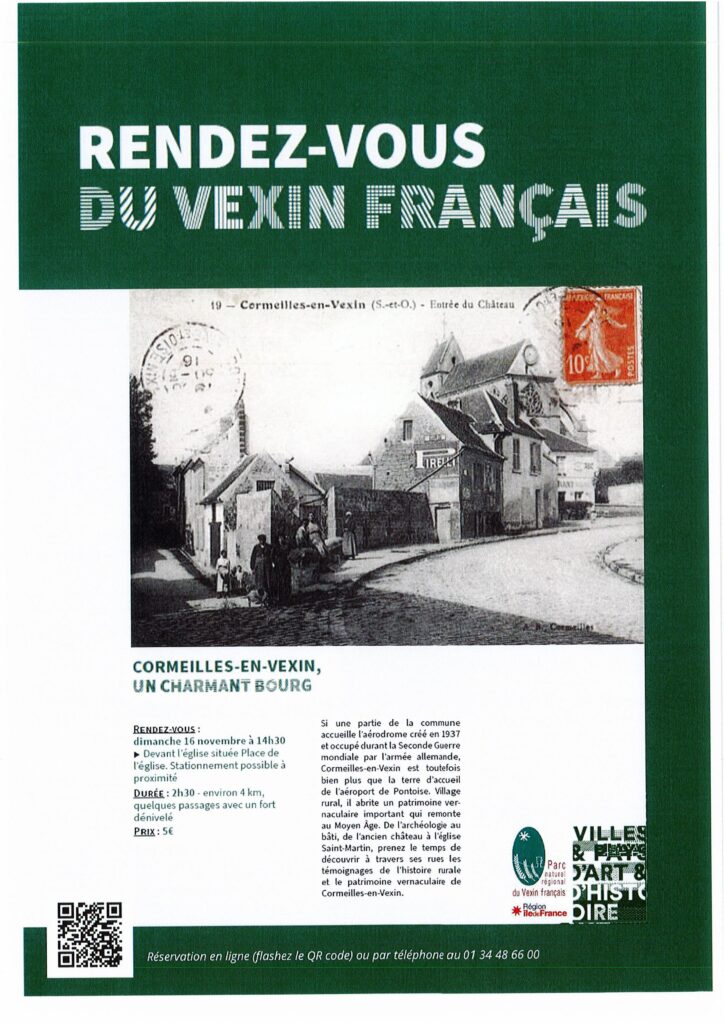 Dans le cadre de son label « Pays d’Art et d’Histoire », le Parc Naturel Régional du Vexin Français propose une visite de Cormeilles-en-Vexin par un guide-conférencier :